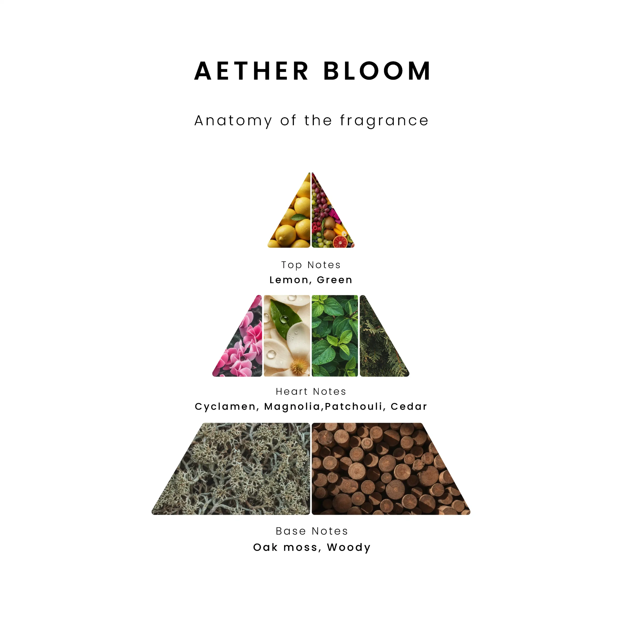 Aether Bloom captures the moment the sun hits a damp garden. It begins with sharp lemon and crisp “green” notes, leading into a complex heart of velvety magnolia and sweet cyclamen. The addition of patchouli and cedar in the middle adds an airy, ozonic depth. The scent lingers on the skin with an earthy, grounded foundation of oak moss and smooth woods, perfect for those who love a natural, sophisticated floral.