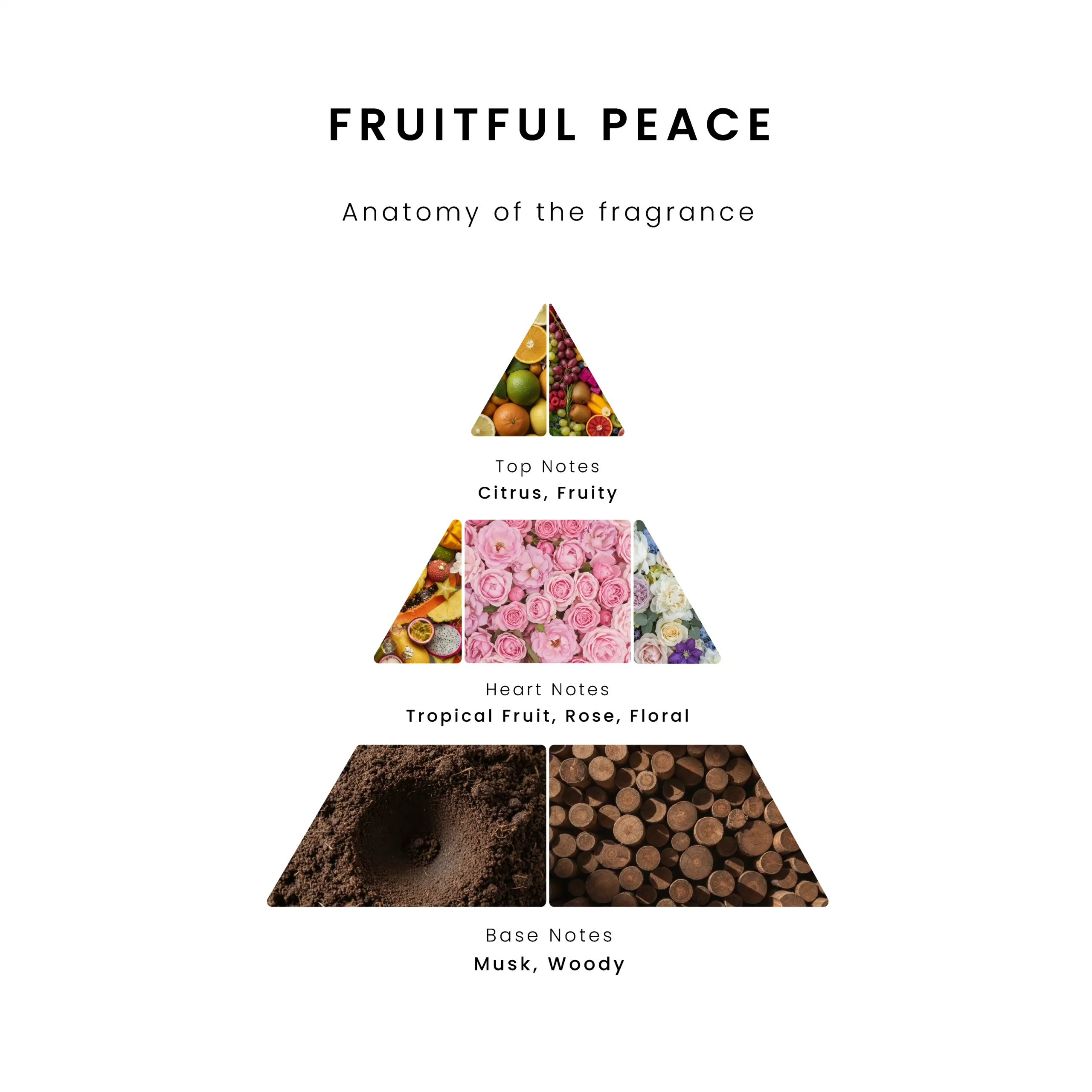Transform your home into a tropical paradise. Fruitful Peace is a celebration of abundance, featuring a top layer of zesty citrus and ripe orchard fruits. The heart is an intoxicating blend of tropical dragon fruit and passionfruit paired with soft rose petals. Finished with a clean woody musk, this scent is designed to reduce stress and invite a sense of playful harmony into your living space.