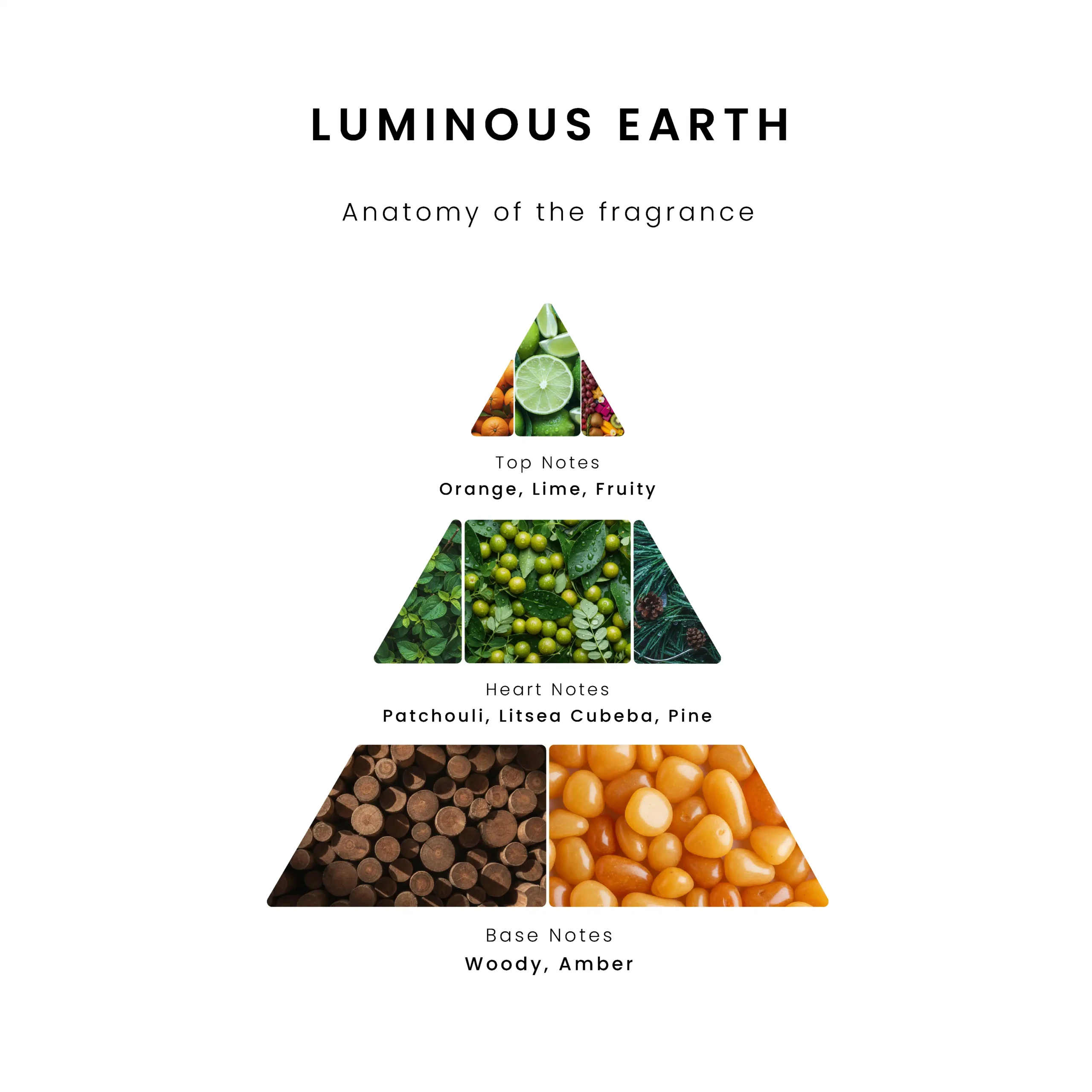 Luminous Earth strikes a perfect balance between high-energy citrus and the deep, quiet power of the forest. Zesty orange and lime provide an immediate awakening, followed by a unique “green” heart of pine and Litsea Cubeba. The fragrance is anchored by a rich, golden base of amber and precious woods, creating a space that feels both vibrant and deeply rooted in nature.
