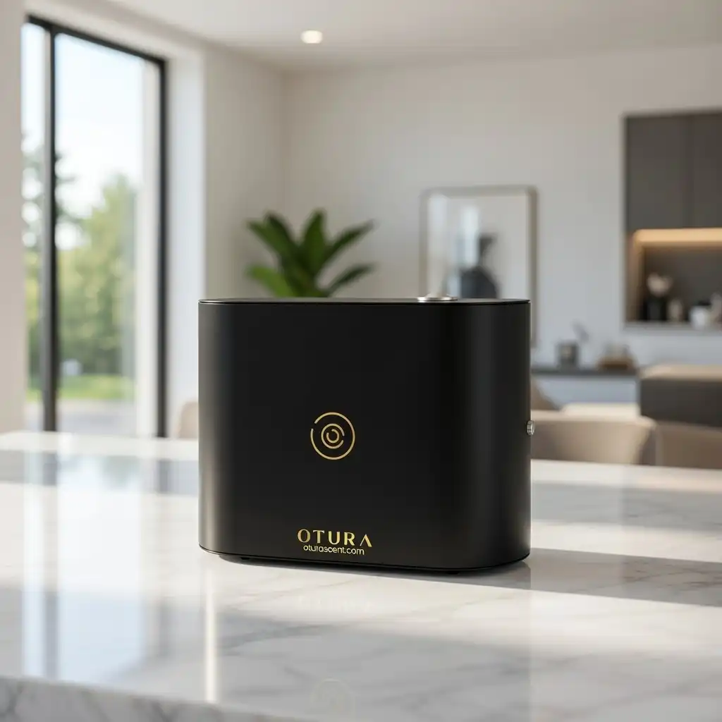 The OTURA AERIS breaks away from traditional industrial boxes with its sophisticated curved edges and premium steel and aluminum finish. This isn’t just a machine; it’s a design statement that delivers high-performance scenting across expansive commercial footprints.