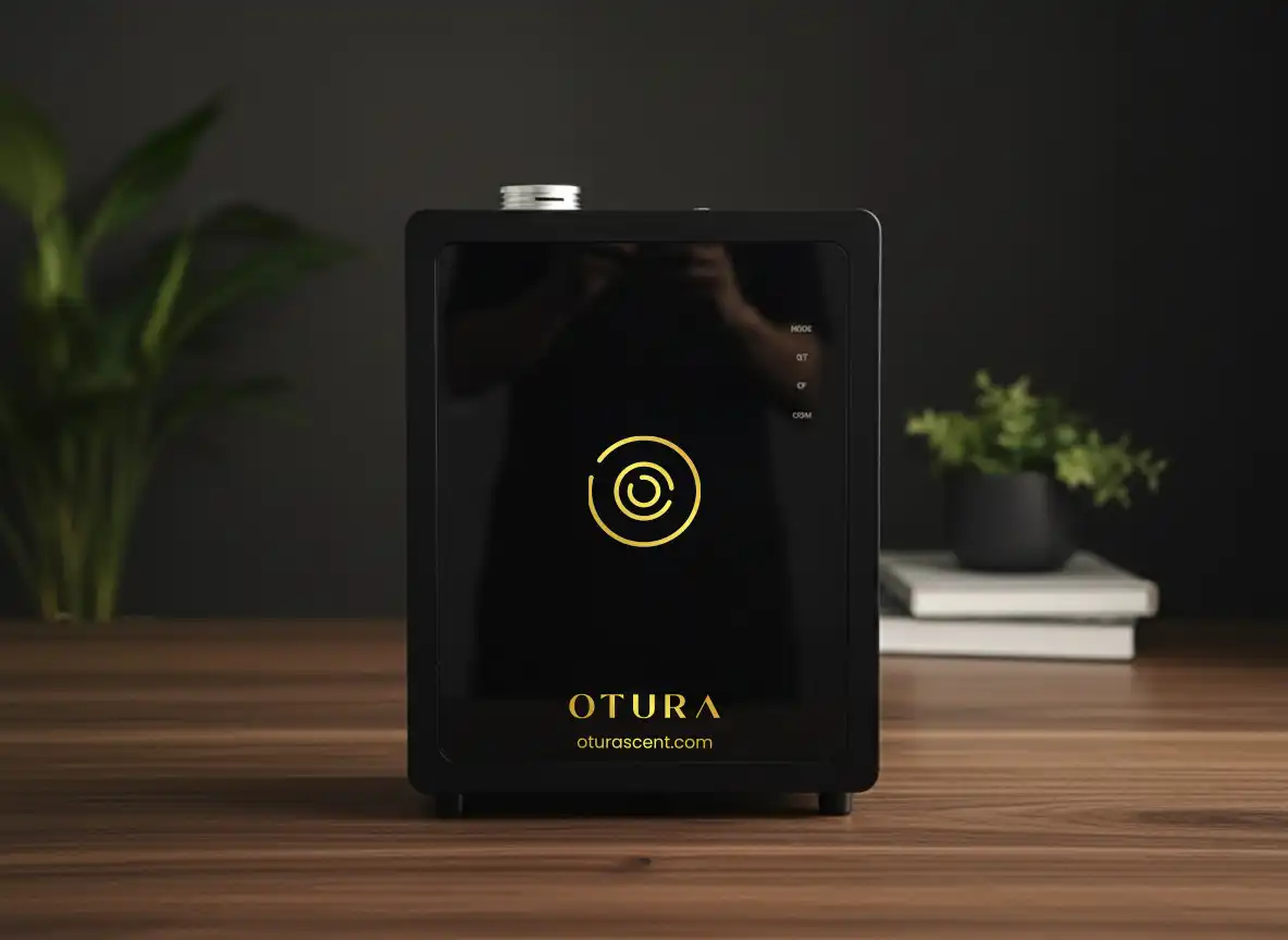 The OTURA LUMIS stands out with its premium glass-front panel, offering a “Vista” into the future of scent marketing. Unlike standard plastic units, the Lumis’ weighted steel and aluminum frame provides superior durability and a high-end feel that complements luxury retail, galleries, and executive suites.